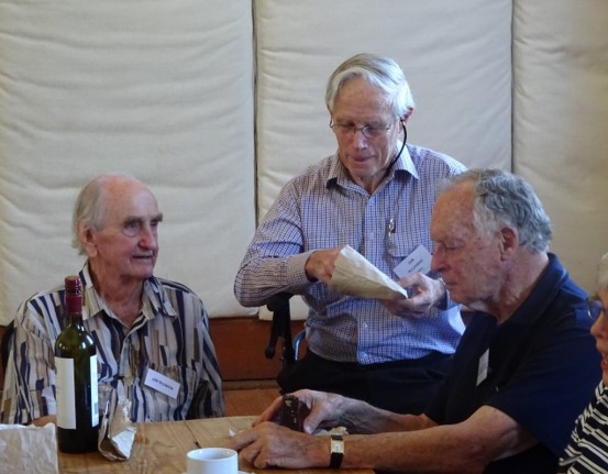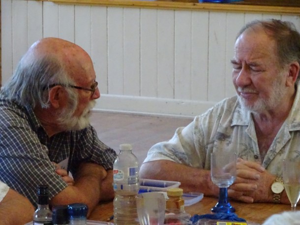 Nola and Neville Penrose (Behind) laugh with Jim Rowan and Dave Elvery