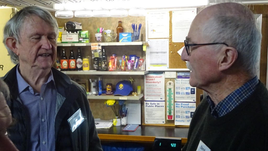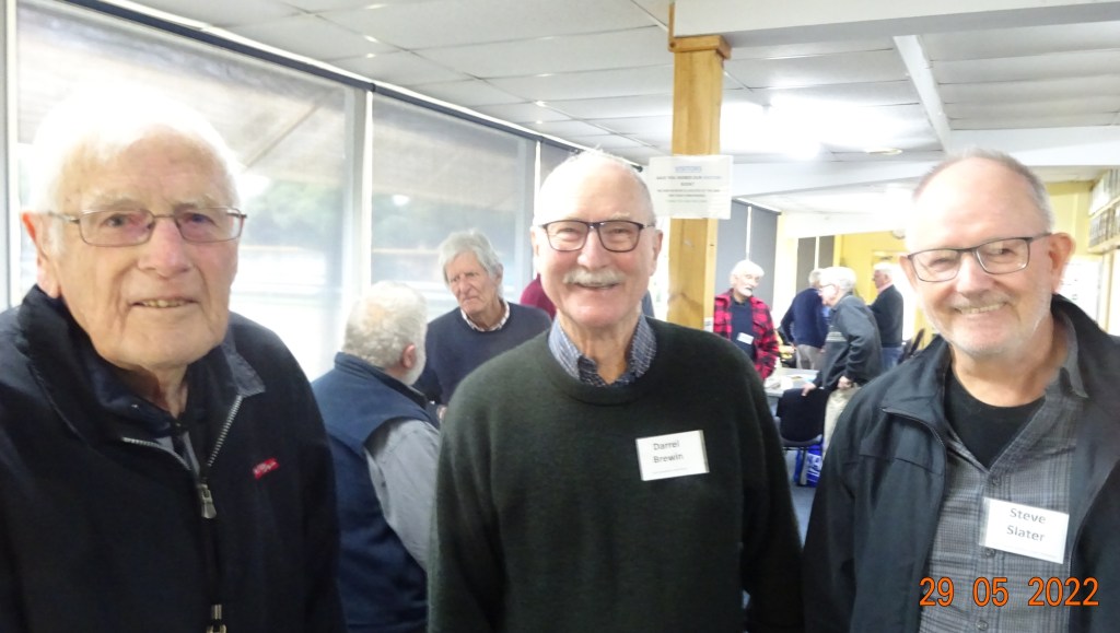 Back row: Jim Allinson, Jim Sisson, Rod Clutterbuck, Steve Slater, Mal Lorimer, Les Russell (hidden), Jeff McFarlane, Grant Baker, Rob Sonogan, Graeme David (facing right), Darrell Brewin, Richard (Zeke) Hartland (obscured), Ed Adamson, Stewart Handasyde (facing right), Bob Edgar (facing left), Harold Allen (obscured), Paul FitzSimons.